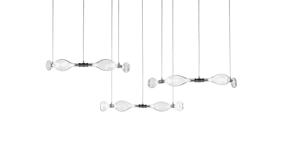 Moduly sú v priehľadnom fúkanom skle s bublinkami a s pochrómovaným kovovým kĺbom, na ktorý sú nasadené LED žiarovky a elektrifikovaný závesný kábel.