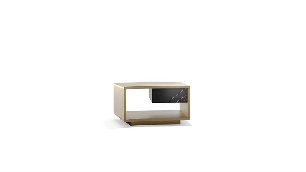 Nočný stolík s konštrukciou a soklom z bronzu, mosadze, tmavej mosadze a titánu. Zásuvka z mramoru.