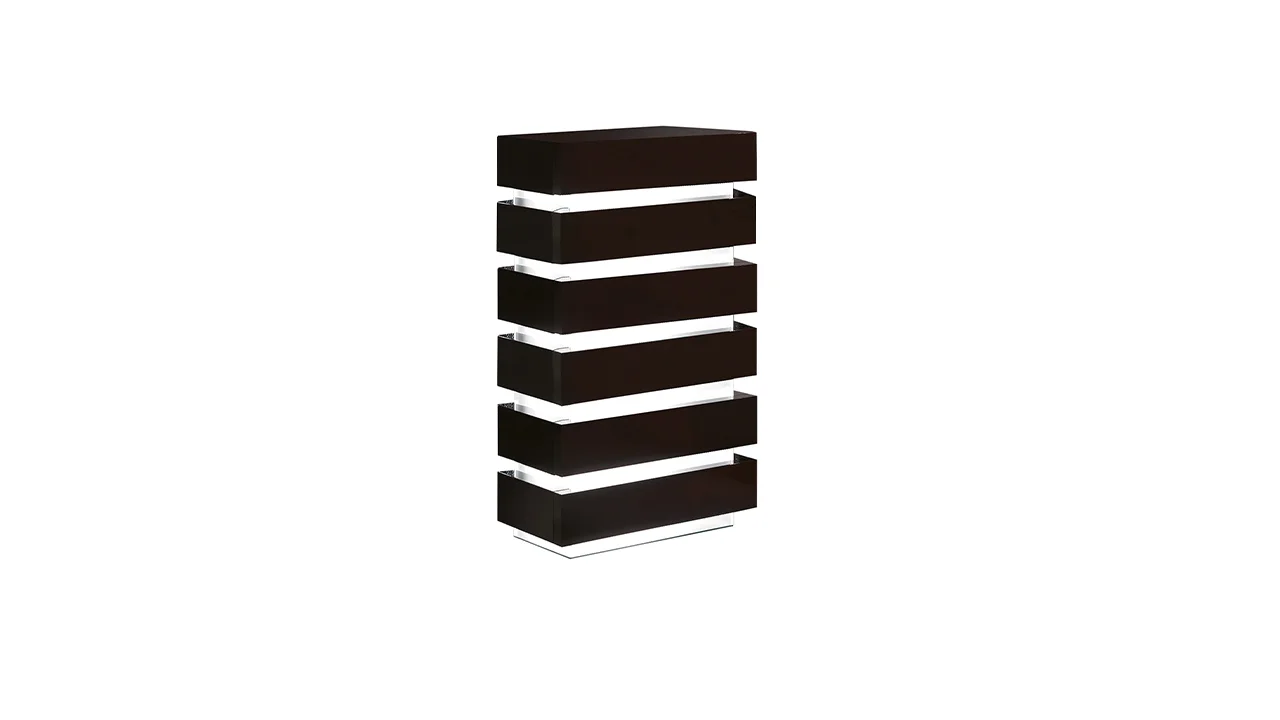 Komoda z dreva s deliacimi časťami z extra číreho leptaného a tvrdeného skla s vnútorným LED osvetlením. Vrch z lakovaného skla pre lakovanú verziu.