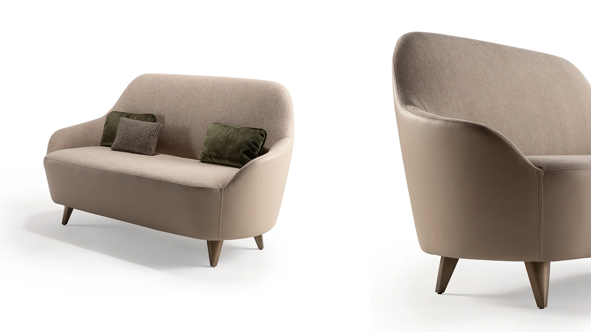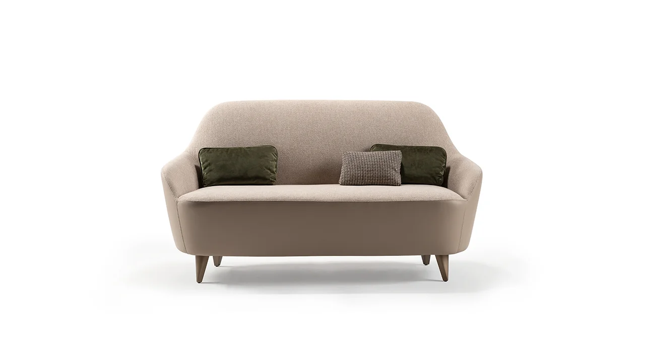Leňoška s čalúnenou drevenou konštrukciou. Drevené nohy v prevedení Canaletto Henné alebo bronz, mosadz, tmavá mosadz, titán.