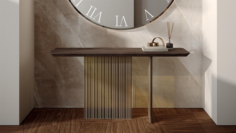 Skosená drevená doska v orechu Canaletto, v Canaletto Henné alebo Skosená drevená doska v bronzovej povrchovej úprave.