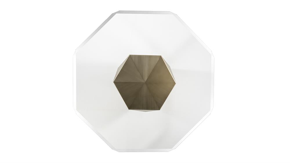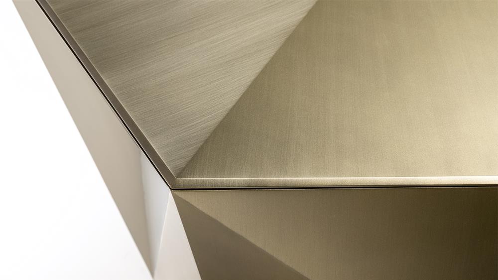 Vrchná doska z priehľadného skla, extra číre sklo, Marmoreflex/Legnoreflex, z priehľadného extra číreho skla s hrúbkou 15 mm s 35 mm skosením alebo 15 mm s hrúbkou 35 mm skosením v prevedení Dark Brass 105M.
