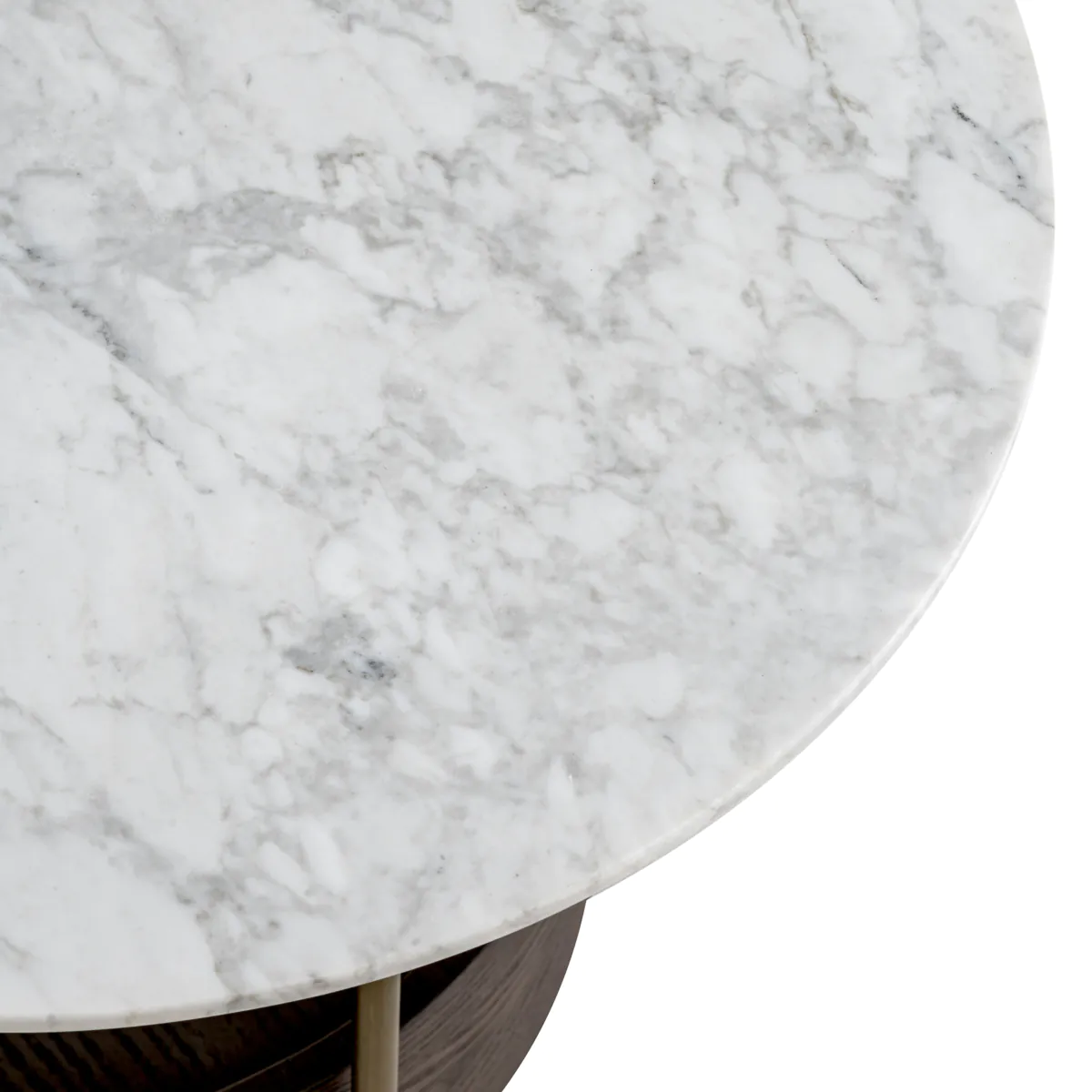 Povrchová úprava z brúsenej mosadze | biely mramorový vrch | vrchná časť a podnos z dyhy